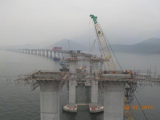 The main contract was for the over sea bridge connecting Hong Kong to Macau and Zhuhai. We were the primary scaffolding contractor for this project. We carried out two packages for this job. One was to design, supply and build access towers around the piers providing access to government officials in carrying out rebound hammer and coring test to assess the density of the concrete piers. Another was to supply grade A especially trained scaffolders for erection of pier head suspended access reaching up to 45 meters above pile cap.