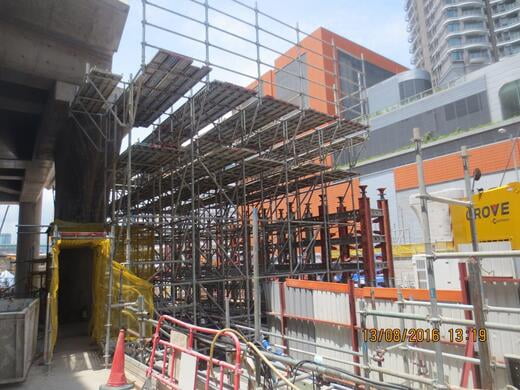 We were one of the three main scaffolding companies for Express Railway project. The project is on a lump sum basis with daywork for all variations. Our total contract value for this project was around HK$64 million. We have done virtually all forms of scaffolding for this job. We used ring lock system to provide access platform for steel-fixers, carpenters and concreters. We erected ad-hoc access towers, walkways, portals etc. using tube and fitting. We used ring lock and RMD system to erect falsework to offer shoring support for bridge and road constructions.